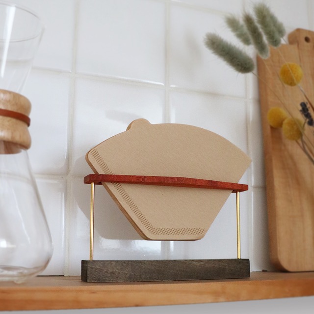 木と真鍮のコーヒーフィルターホルダー ナチュラル