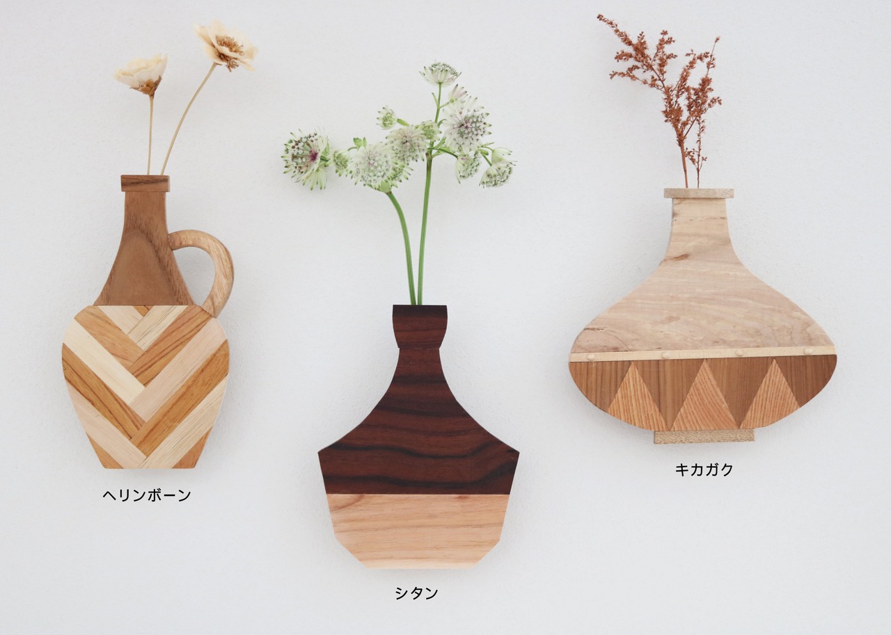 壁につけられる花瓶 PETANシリーズの【ヘリンボーン】です。