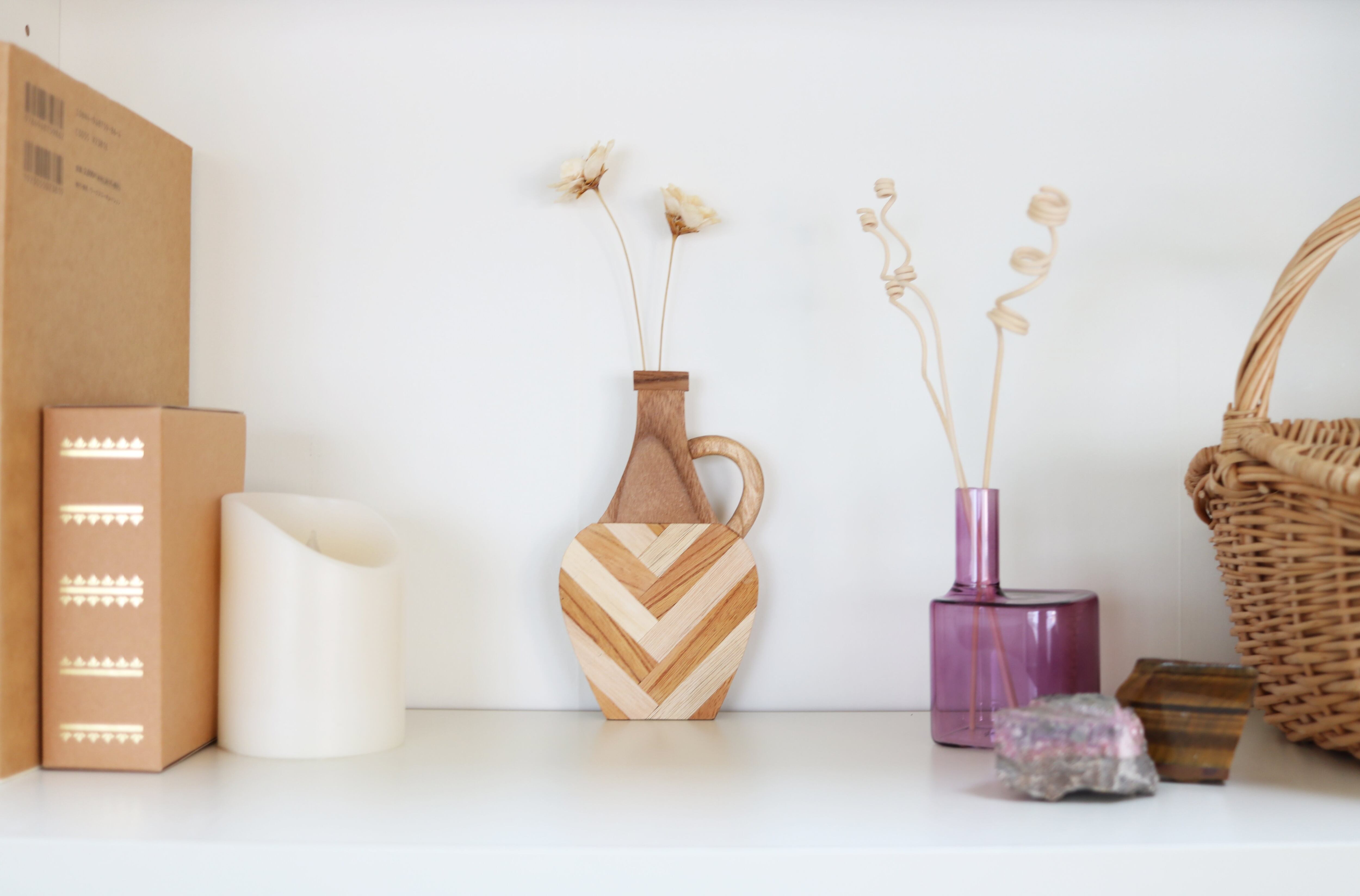 銘木 磁石で壁につける花瓶 PETAN(ペタン)シリーズ【ヘリンボーン】