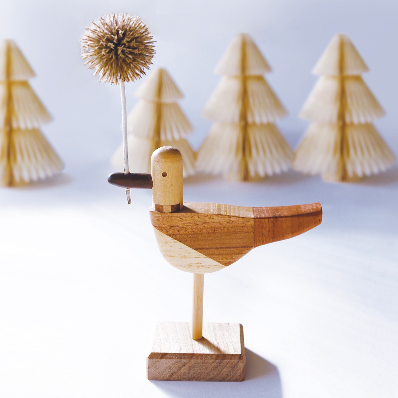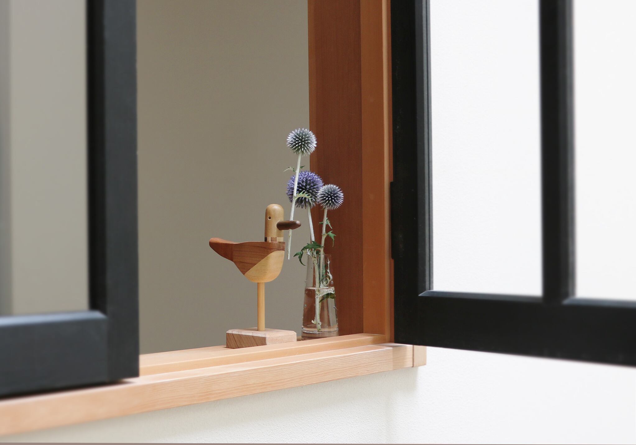 くちばしにドライフラワーを挿して飾る置物です。